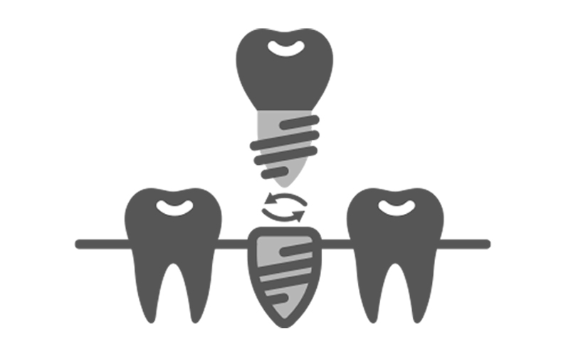 El implante dental se une con el hueso mandibular, proporcionando un soporte estable para los dientes artificiales. Las prótesis y los puentes colocados sobre los implantes no se deslizan ni se mueven en la boca, lo cual es una ventaja especialmente importante para la masticación y el habla. Esta adaptación ayuda a que las prótesis y los puentes (así como las coronas individuales colocadas sobre los implantes) parezcan más naturales que los convencionales.